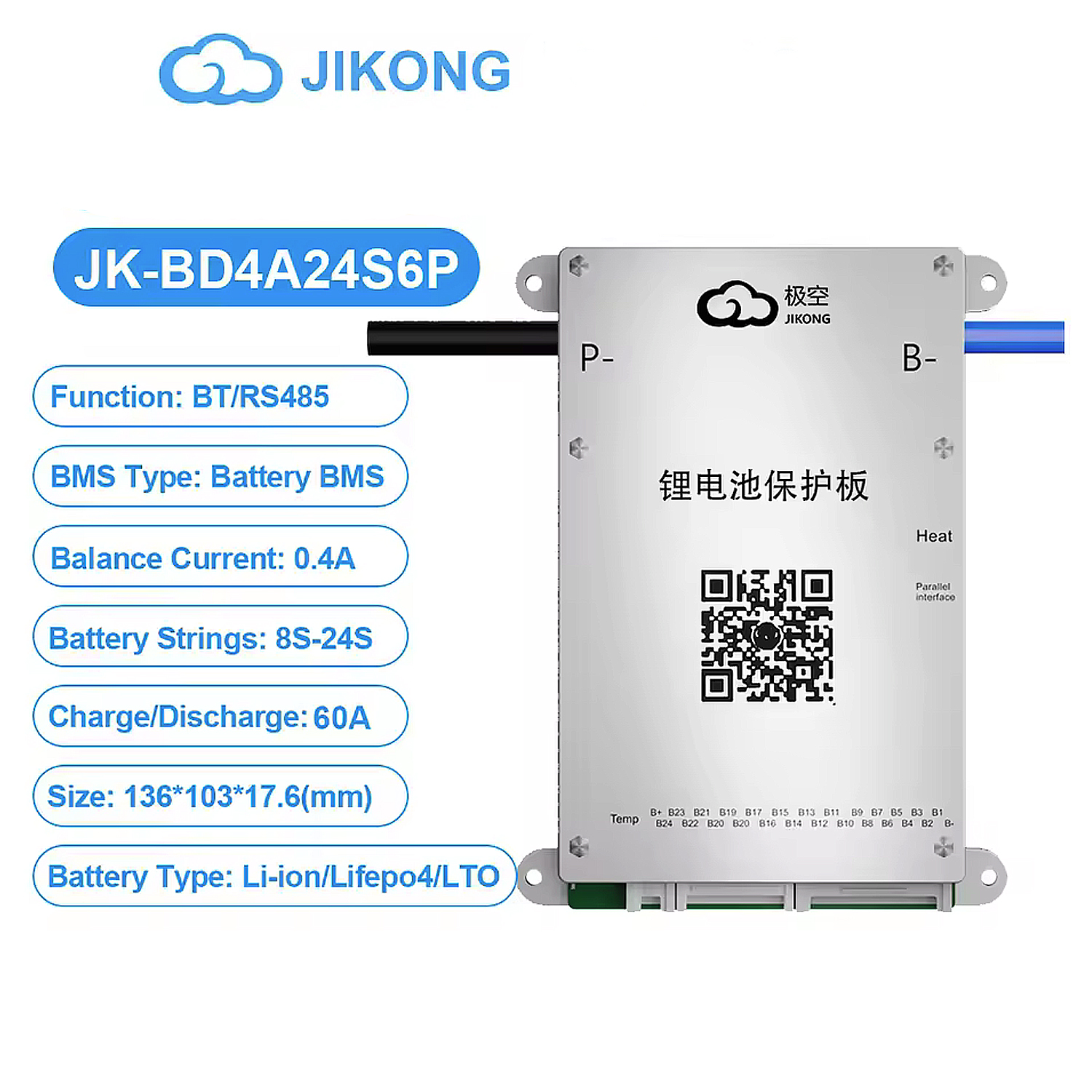 JK-BD4A24S6P Jikong 8S-24S 60A Deşarj – 400mA Aktif Balans